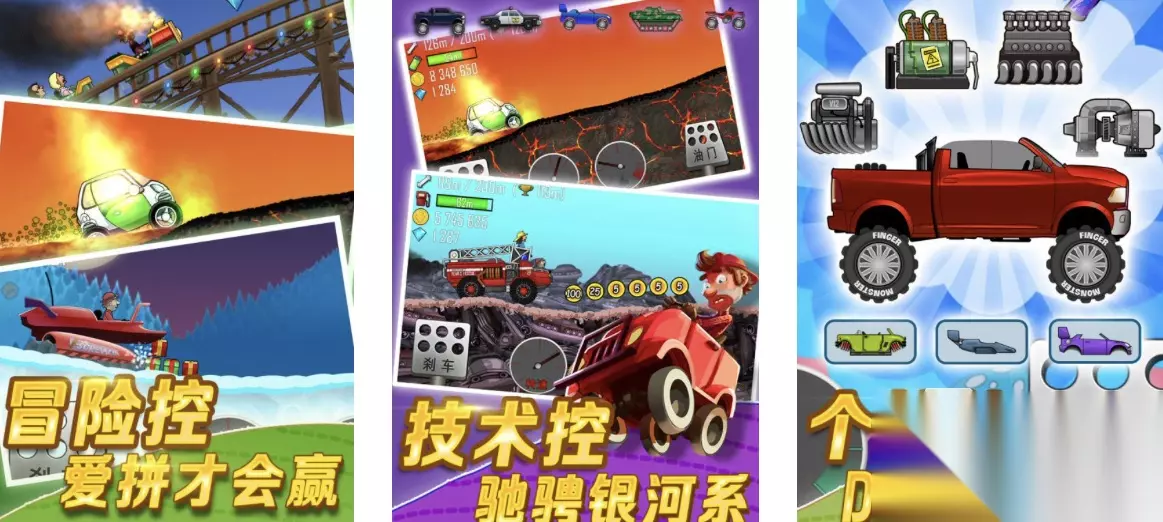 整体画风比较炫酷,玩家要操控雷霆飞机与敌方进行战斗。在飞机类型的选择上,玩家的自由度比较高,除了双翼飞行外,玩家也可以将配件进行自由组合,以达到更高的飞行速度。视觉效果是一大亮点,每一位对战所发出的技能,都会有特定的路线效果显示,让玩家更加投入其中。 高速下载 普通下载 优先233乐园APP下载 7、《登山赛车》