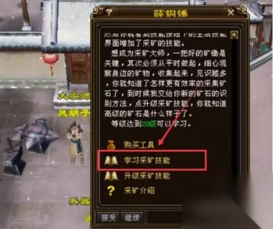 天龙八部挖矿在哪里学 学习位置一览: 1、游戏中挖矿技能在洛阳的NPC薛铜锤处学习。 2、玩家与他对话后再点击“学习采矿技能”选项就可以学习采矿了。