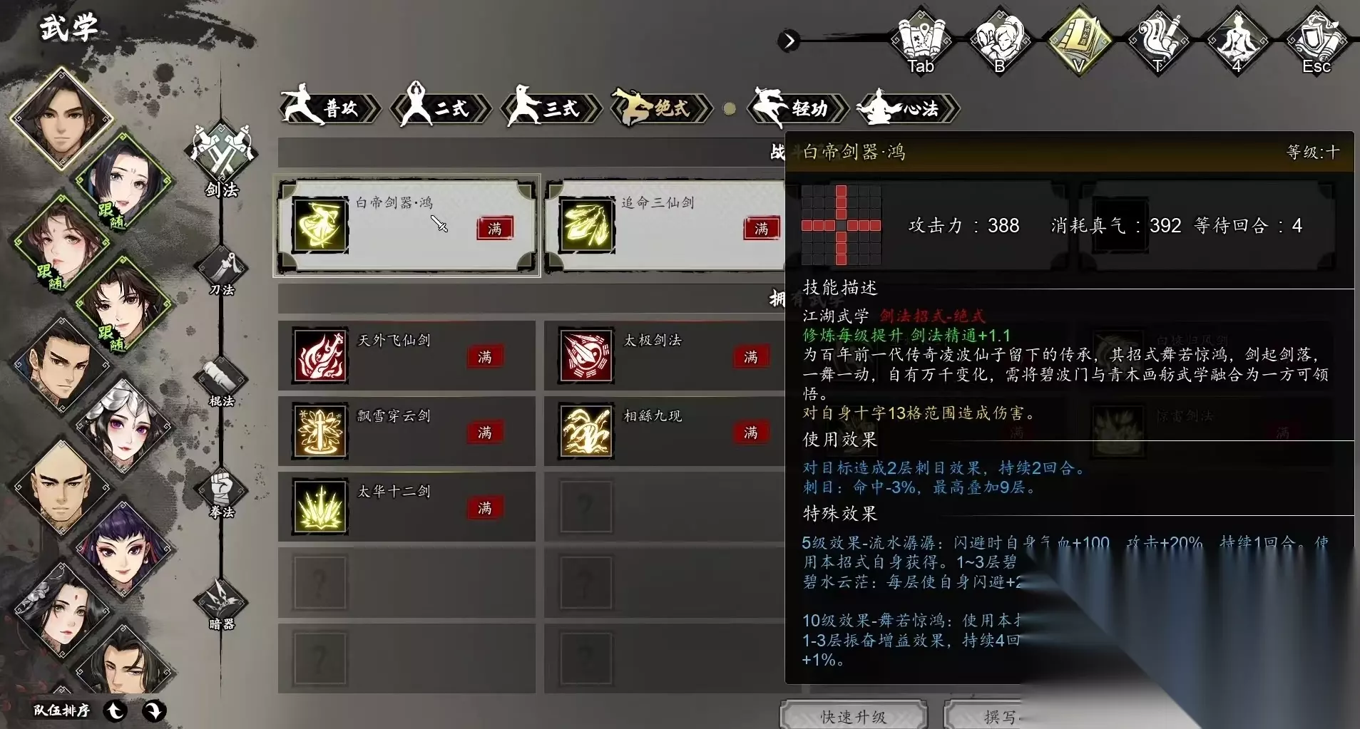 完成该任务之后可以获得翡翠观音精良图纸,寒光剑法、武学感悟等奖励,上官虹将会习得自身的独特武学白帝剑器鸣。这项任务的难点在于好感度提升不太容易,因为必须达到70才会出发,所以玩家需要先完成一系列的相关任务,然后结合赠送礼物等方式才可以将好感度提升上去。如果前期错过一些比较关键的剧情或者是选择不当,那就有可能导致和上官虹的好感度无法达到触发的临界点,这样可以通过多次读档的方式来实现。