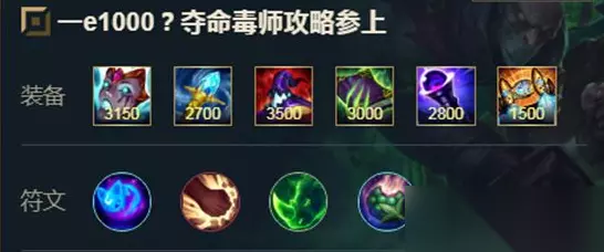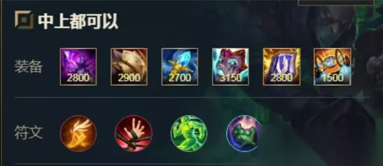 装备思路: 装备以及天赋就是这套,后期一个e1000,背到ad直接秒了,不过这个英雄版本T3,并不是最强的英雄,如果你喜欢这个英雄可以练一练,但是上分不推荐使用。 装备搭配三: