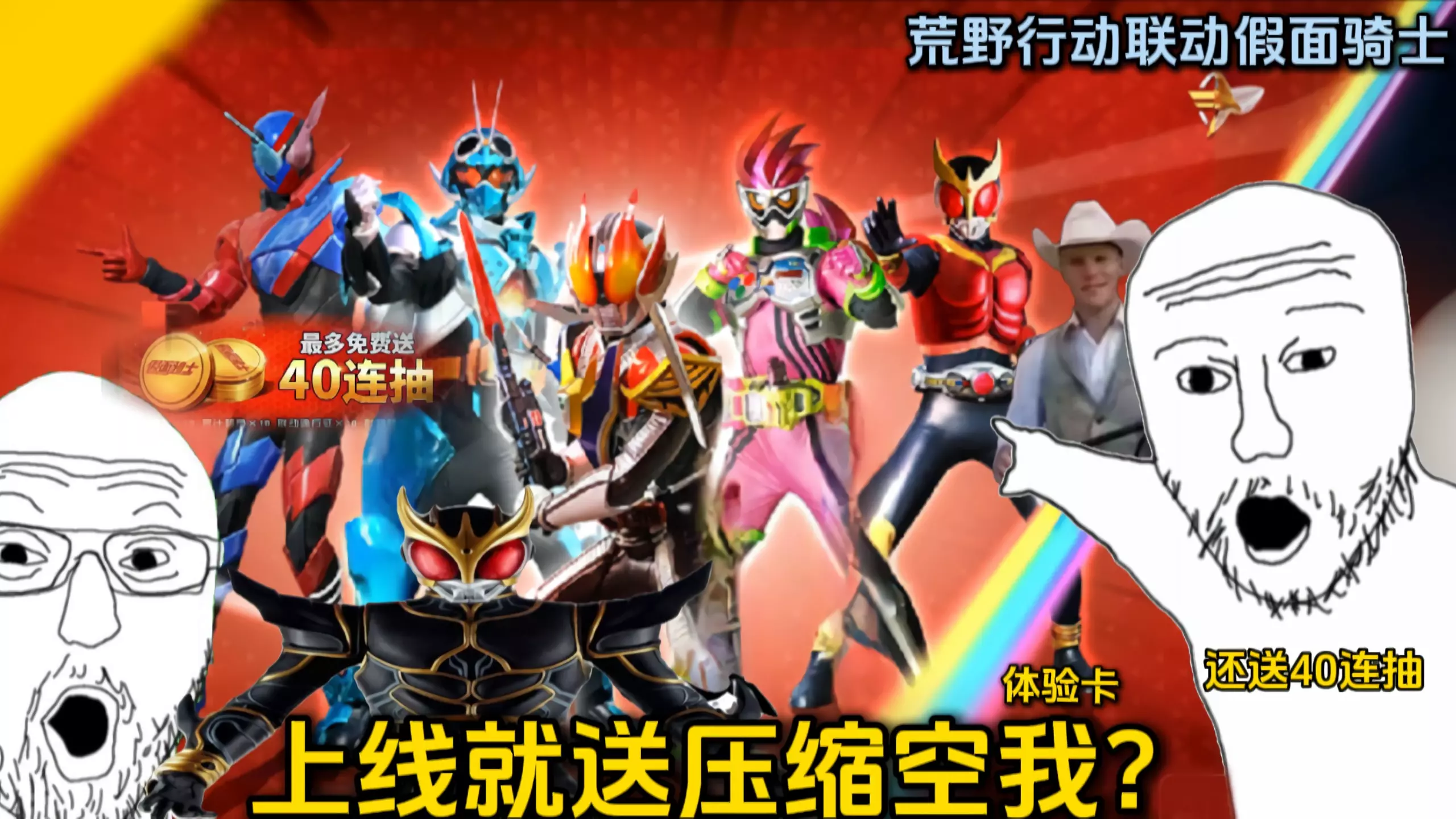 这是一则假面骑士相关的娱乐图文帖,用趣味玩梗的方式,展现被妈妈问压岁钱去向时,自己嘴硬不肯承认压岁钱用来抽假面骑士相关物品的搞笑场景。