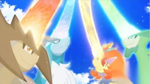 在火车站,小智一行人登上了进城的火车。来到清风车站,火车暂时停靠。一行人来到站台上,在买了很多火红不倒翁便当当作午餐后回到车上。受伤的凯路迪欧摔到了车厢顶,被小智一行发现。凯路迪欧告诉一行人酋雷姆正在追杀它,它正在尝试逃跑。话音刚落,酋雷姆带着它的几何雪花追随者们来到了,并要求继续战斗。看到酋雷姆的艾莉丝回想起了儿时在家乡长辈讲起的有关酋雷姆的故事。就在这时,列车进入了隧道,酋雷姆无功而返。