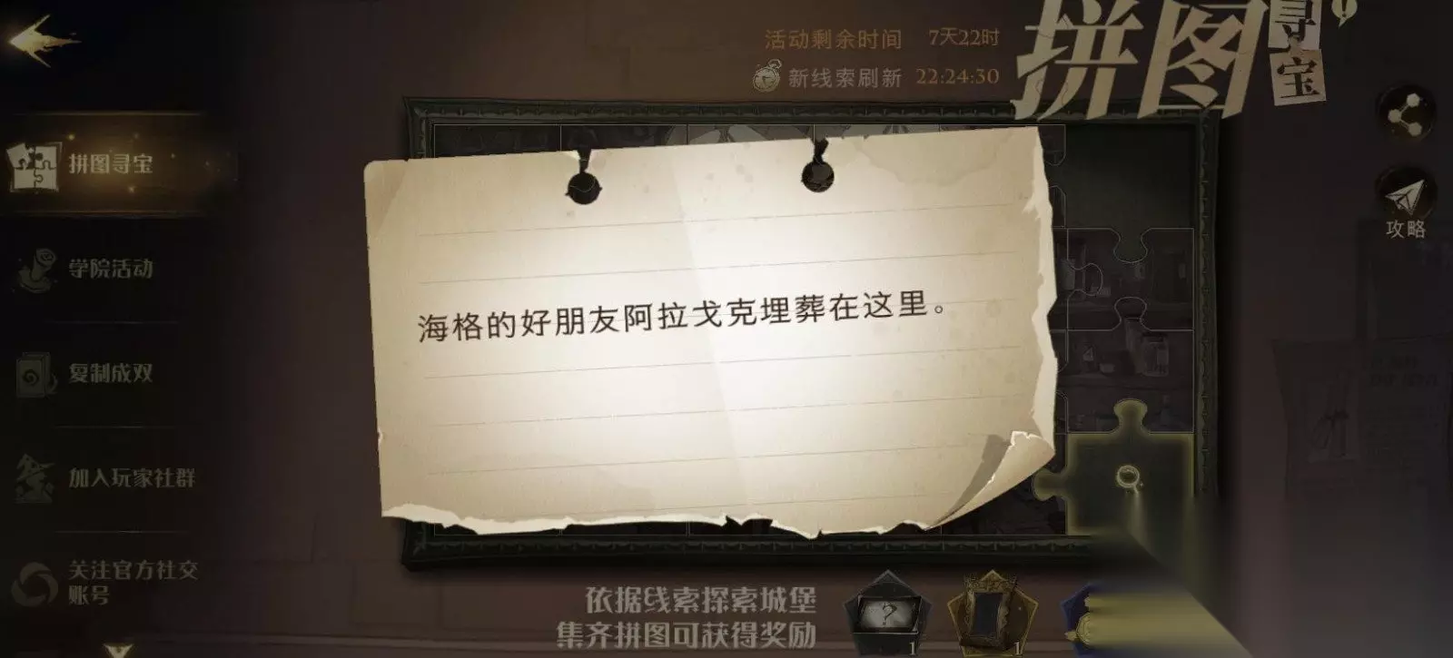 拼图攻略2 拼图线索2:海格的好朋友阿拉戈克埋葬在这里。