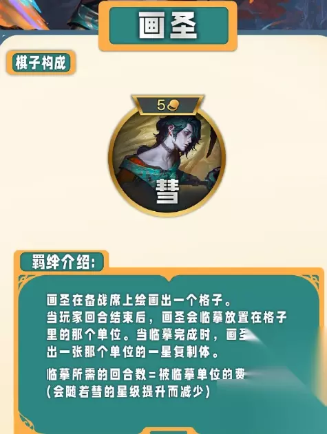 6、画圣 临摹完成时获得一星复制体,且临摹的回合与该英雄的费用相同。