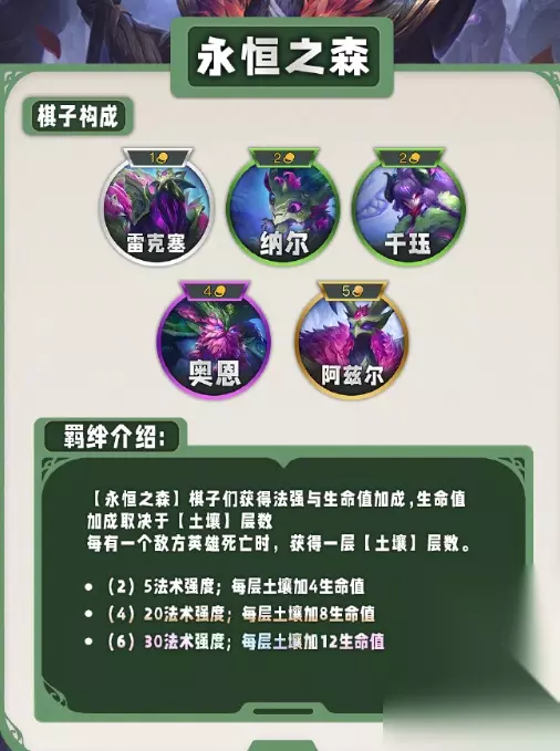 15、永恒之森 获得法强与生命值加成,敌人死亡时即可获得一层土壤。