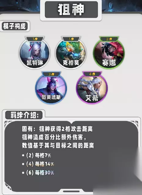 5、狙神 获得两格攻击距离,造成百分比额外伤害。