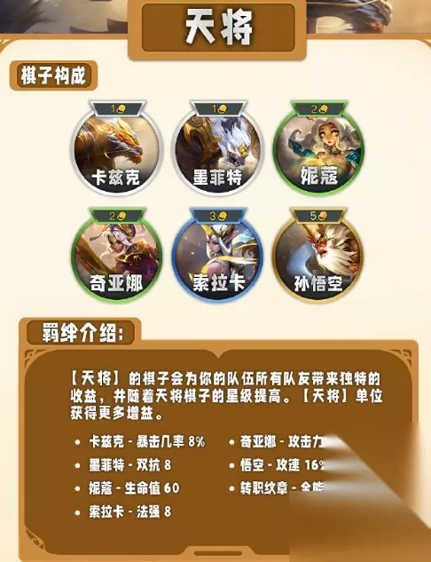 3、天将 队友获得独特的收益,且天将棋子将获得更多的收益。