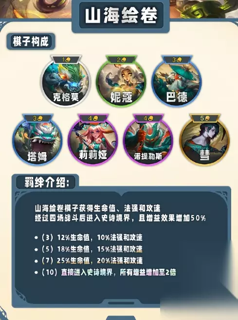 12、山海绘卷 获得生命值、法强和攻速,经过四场战斗后进入全新的境界并获得增益。
