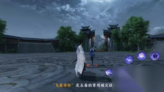 点击查看动图 4.基础技能-飞雀夺怀 “飞雀夺怀”是五毒的常用破定技,并可造成有效的范围打击伤害。