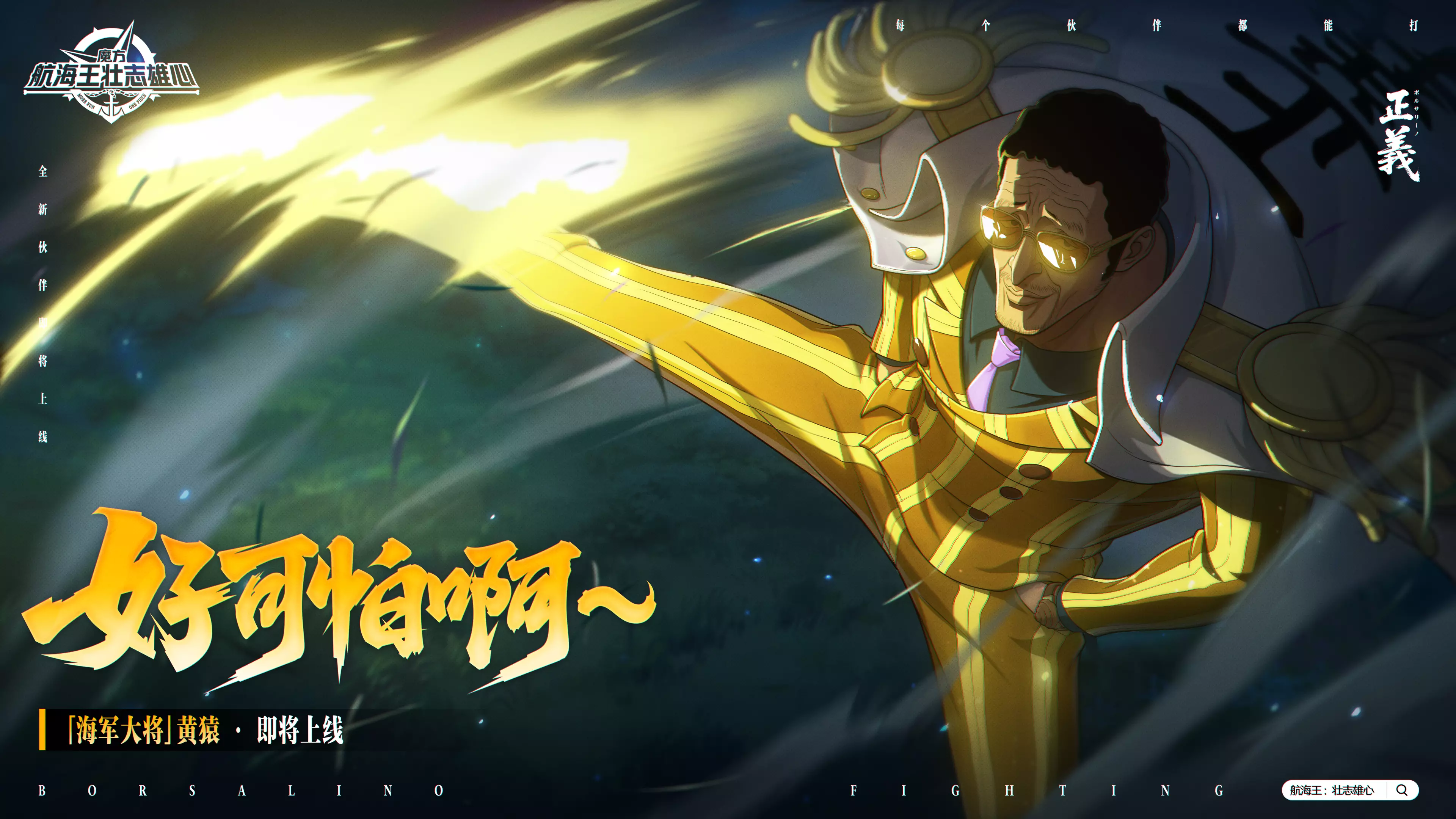下一位限定红色伙伴「海军大将」黄猿将于9月底加入冒险!