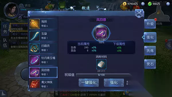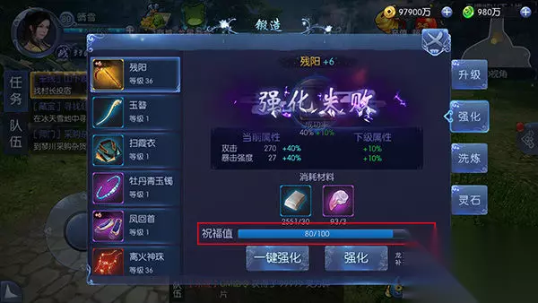 2. 强化失败会增加祝福值,祝福值满了,这次强化会100%成功