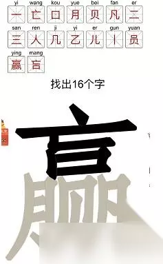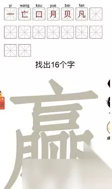 《汉字十八变》赢字找出16个字怎么过攻略带给大家,这款游戏的人气还是非常高的,内容做的很充足的,玩法是非常多样,体验很丰富,在游戏中过程中,各位玩家们难免会遇到各种不会解决的问题和不会做的任务,虽然这是最能带给玩家游戏体验的重要环节,但是如果实在不会,那就要来看看详细的攻略了,具体怎么解决呢?下面233乐园小编就来教教大家。 汉字十八变赢字找出16个字怎么过 1、任务内容:根据题目所给字“赢”通过拆分再组合从中找处16个常见字(一、亡、口、月、贝、凡、二、三、人、己、乙、儿、丨、员、赢、吂)。