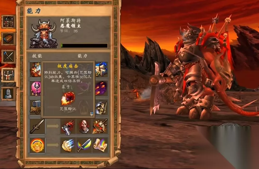 地狱阵营以独特的召唤机制和黑暗魔法为核心,地狱英雄的核心技能是异界传送(Gating),该技能允许战斗中召唤援军,配合终极技能绝对异界之门(Absolute Gating)可实现瞬间召唤,极大提升战场控制力。学习路径需优先掌握黑暗魔法、进攻术和后勤学,其中穿透魔抗(Dark Ritual)能强化法术效果,而战争狂人(War Frenzy)则提升物理输出能力。