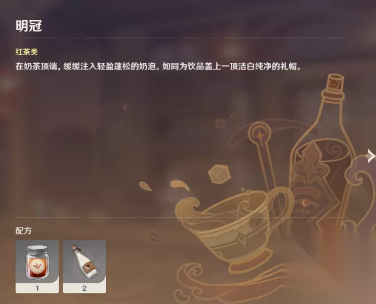原神曲生酌微梦明冠怎么调 【明冠】 一份红茶 两份牛奶(在奶茶顶端,缓缓注入轻盈蓬松的奶泡。如同为饮品盖上顶洁白纯净 的礼帽。)