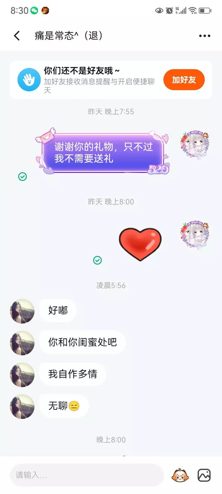 我没让你给我送礼,而且这个礼物我真的不喜欢(╥﹏╥)
