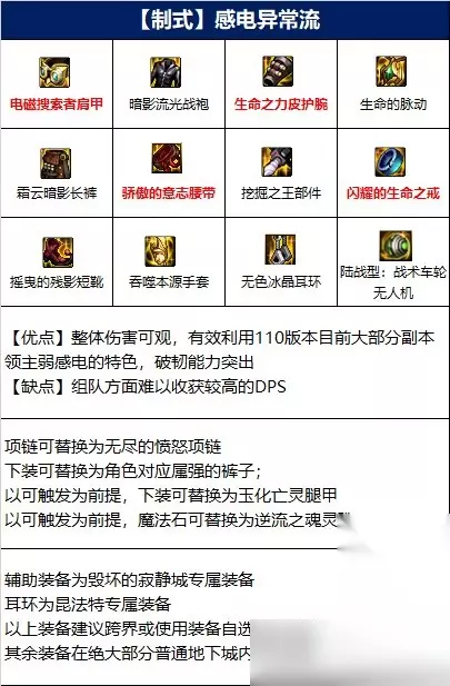 将自身大量伤害转化为持续伤害,同时配合男气功本身高连击的特性快速的结算感电伤害,可以说是较为契合男气功特性的一套搭配,又因为目前大部分怪物均为弱感电,因此感电异常流的破韧能力也是非常的强力。 《DNF》男气功师110级感电异常流装备搭配