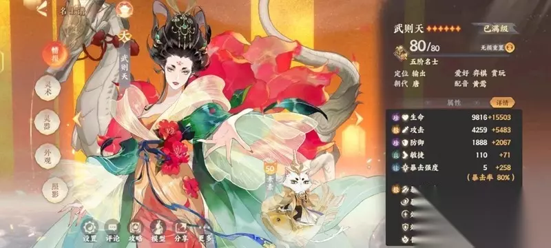 忘川风华录名士的主要属性分为生命、敏捷、暴击强度、攻击、防御等。每一位名士的主要属性都不相同,玩家根据关卡的特点,以及名士主要属性的匹配度,进行出战阵容、名士灵气相关的搭配。初始30必得的天卡之一武则天,新手玩家应该怎么搭配使用呢?小编为你准备了一份攻略,一起来看看吧~