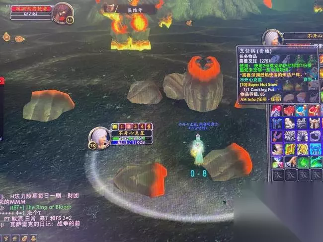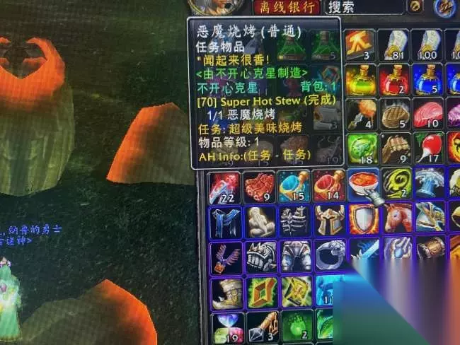 准备好烹饪到刀锋山左下角铸魔营地:恐怖,找到深渊烈焰使者的怪,击杀后在其尸体上使用任务道具烹锅,获得最终道具恶魔烧烤,任务完成。