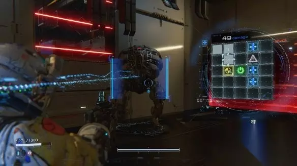 有趣的是,在戴安娜入侵的过程中,玩家依旧可以按下R1让休闪避,也可以按下R2对敌人进行射击。当然,这并没有必要,玩家完全可以在走完格子后进行射击,加上休的默认枪械在DEMO中子弹上限是6枚,子弹会自己缓慢恢复。 玩家完全有条件进行破解、射击、破解的循环操作,有挑战欲望的玩家可以同时进行操作。这一点让我认为有趣的地方在于,一笔画走格子的解谜设计相当简单,游玩过程中却不会因为解谜的简单而感受到无趣,因为最具大脑挑战性的点在于大脑多线运行。