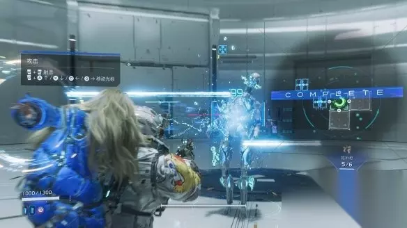 这是因为游戏中的解谜相当简单,玩家只要按下L2瞄准敌人,然后就可以通过三角、圆、叉和方块来进行一笔走格子。DEMO中并没有任何方向限制,只要绕过不允许行走的红色方块,走到绿色位置便可解开敌人的防御让休的射击伤害猛增。 在走格子的过程中,有一些蓝色的方块,连接这些方块可以使入侵效果加强,不过并没有强制要求必须连接。