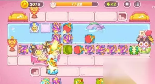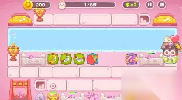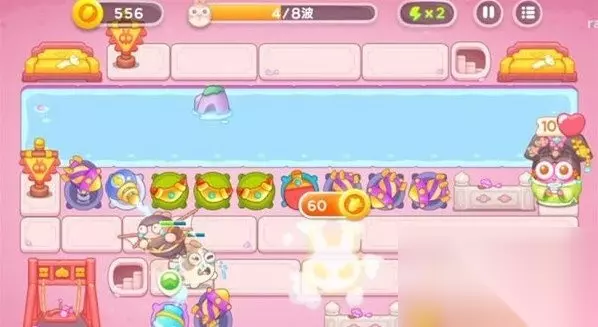 《保卫萝卜4秋妃传》第27关攻略 一、图文介绍 1、在第一波开始时,在左右两边放置一个船锚炮台和一个导弹塔,同时清理掉中间一排的障碍物。清理完毕后,迅速添加船锚炮台和乒乓球拍。
