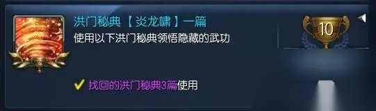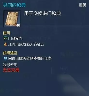 当我们做完补刀10次并得到秘典的时候,就可以做接下来的秘籍任务了。 (任务大致流程:武神塔NPC对话→白雾森林NPC对话→失落的永灵族遗迹副本→白雾NPC对话→武神塔NPC对话→江流市成就商人购买特殊物品→冲角团平东舰队NPC购买特殊物品→武神塔NPC对话,完成秘籍任务)简直丧心病狂跑断腿有没有 写有洪门秘籍的纸张+写有洪门秘典的扇子(海蛇兑换员20个恶女徽章购买)恶女徽章可以在积分商城购买,一天最多五个。