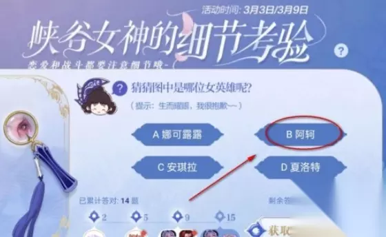 问题:猜猜图中是哪位女英雄呢? 提示:生而耀眼,我很抱歉~ A、娜可露露 B、阿轲 C、安琪拉 D、夏洛特 答案:阿轲 答案解析: “生而耀眼,我很抱歉!”是阿轲节奏热浪皮肤的台词。 以上就是王者荣耀生而耀眼我很抱歉英雄介绍的全部内容了,更多相关内容敬请关注233乐园游戏网。 【小编推荐】专区入口 || 视频站入口 || 体验服申请入口 || 全民竞猜赢好礼 【新英雄爆料】| 司马懿 || 瑶 || 孙策 || 新英雄:囚徒/书圣/瞬 | 【新皮肤爆料】| 李白团战皮肤:敏锐之力new || 诸葛亮团战皮肤:掌控 || 典韦穷奇皮肤 Hot!! | 王者荣耀最新攻略 赛季段位继承表 每日一题 边境突围玩法攻略 体验服爆料