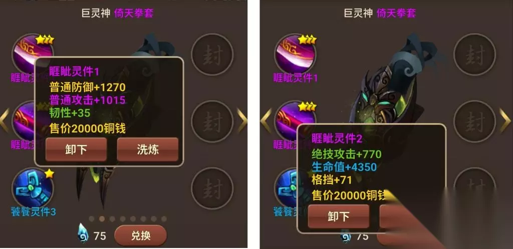 巨灵存在的意义是为了站得住脚,特别是在PVE场景中,巨灵技能起手,只要抗住怪物放技能后那一轮普通伤害就行。所以对于灵宝的需求也只要两个,生命和普防。这比其他伙伴来说,要少1/3的灵宝。 4、不需要特意去花灵石或元宝刷封灵属性