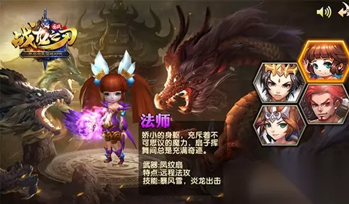 “女怕嫁错郎,男怕入错行”,玩游戏更怕选错职业!《战龙之刃》攻略小讲堂开课啦,初入三国,凡是慎重为妙,就拿选择职业来说,更是关乎自己的喜好和后期的角色成长,所以,今天小讲堂就给大家带来《战龙之刃》四大职业的介绍和技能解析。目前版本中,战龙之刃有四个主将选择,法师、儒将、猛士、射手。每个职业风格各异,远攻,近战,总有一个适合你。 【法师】 外貌上就略胜一筹,外貌协会的主公可不必犹豫哦。法师就是萌妹子的代表,尤其是两个大辫子,可爱极了,还有那甜美的声音,整个人都要萌化了。但是,千万不要小看萌妹子哦,小小的身躯里可隐藏着巨大的能量呢。攻击方式是法术远程,先来看看技能吧。