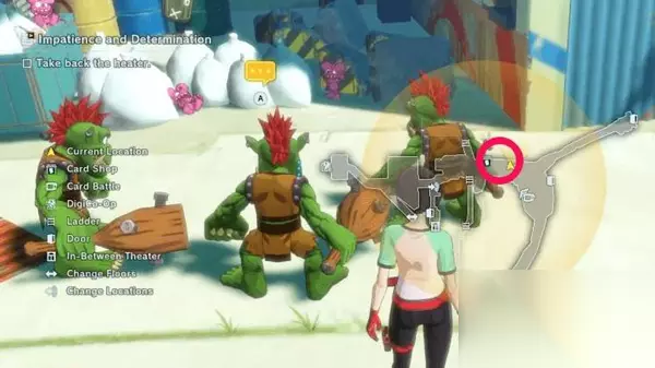 主线任务进度:世界树的悲鸣(The World Tree's Cry)期间 前置支线任务:需先完成我想去传说中的地方!(I Want to Go Someplace Legendary!) 委托人:露娜兽(Lunamon) 想解锁焦躁与决心任务,得先完成“我想去传说中的地方!”支线任务,完成后在进行世界树的悲鸣主线任务时就能解锁它。 解锁该任务后,数码暴龙机(Digivice)会收到露娜兽的讯息。 要开启任务,需前往中央镇地图南部区域。在那里与露娜兽对话。 任务流程 接任务后去中央镇找通往上层平台的梯子,爬上去进蓝色房屋。
