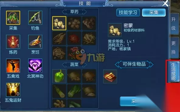 生活技能选择详解: 生活技能分类: 原料获取技能:采集、钓鱼。 物品制作技能:炼药、烹饪。 养生类技能:五禽戏、北冥神功、五鬼运财。 生活技能面板:点开技能按钮,页签中选择生活技能。 【采集】 主要用于收集炼药、烹饪的半成品原材料。 技能学习:消耗帮贡、银两或银票。 采集地点:各大野外。 采集需求:活力(参加日常、限时活动可获得)。 采集流程:点击采集图标,在中间物品框中选择要采集的对象,点击采集按钮后可自动寻路到采集地点。到达地点后,界面中会弹出快捷使用框,点击按钮可进行采集。移动将会打断采集过程,采集的物品将直接放入包裹中。 【钓鱼】 主要用于收集烹饪的半成品原材料。 技能学习:消耗帮贡、银两或银票。 钓鱼需求:活力(参加日常、限时活动可获得)。 钓鱼地点:杨家镇野外小河边。 钓鱼流程:点击钓鱼图标,在中间物品框中选择要采集的对象,点击钓鱼按钮后可自动寻路到钓鱼地点。到达地点后,界面中会弹出快捷使用框,点击按钮可进行钓鱼。 【炼药】 用于生产可装备的药品、药品半成品。 技能学习:消耗帮贡、银两或银票。 炼药需求:活力(参加日常、限时活动可获得)。 炼药流程: 半成品合成:点击炼药图标,在右侧物品框中选择要合成的半成品,点击开始制作直接扣除包裹里的相应原材料来合成半成品,每个半成品消耗一个原料,移动会打断操作。 药品制作:点击炼药图标,在右侧物品框中选择要合成的药品,点击开始制作弹出制作窗。输入要制作的组数,每组10个药品。点击炼药,可生产相应药品。 【烹饪】 用于生产食品和食品半成品。 技能学习:消耗帮贡、银两或银票。 烹饪需求:活力(参加日常、限时活动可获得)。 烹饪流程: 半成品合成:点击烹饪图标,在右侧物品框中选择要合成的半成品,点击开始制作直接扣除包裹里的相应原材料来合成半成品,每个半成品消耗一个原料,移动会打断操作。 食品制作:点击烹饪图标,在右侧物品框中选择要合成的食品,点击开始制作弹出制作窗。输入要制作的组数,每组10个食品。点击烹饪,生产相应食品。 【养生类技能】 五禽戏:学习技能可永久提升一定的气血上限。 北冥神功:学习技能可永久提示一定的法力上限。 五鬼运财:学习技能可永久提升一定的幸运值,幸运值每提升一点,爆装备概率增加1%。 以上就是233乐园玉米为大家带来的倩女幽魂手游平民生活技能选择详解攻略,相信各位小伙伴都清楚了生活技能哪个好,怎么选择了吧!更多相关攻略,请关注倩女幽魂手游专区!
