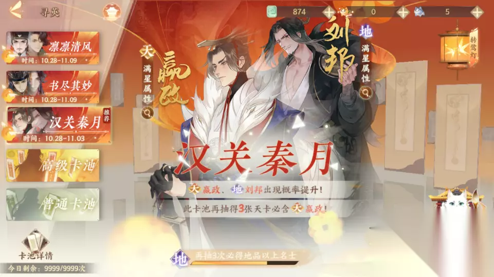 只是简单的开局指南,从入坑开始说。 1、新手推荐用政非开荒(即嬴政、韩非),开局自选池子选韩非,欧的话一发入魂,非的话第30抽必出。 2、韩非到手后会出3个活动up池,建议先抽嬴政池(他是阵容核心,优先主养),欧的话一发十连就中,非的话歪两个天第三个必定是嬴政。 注:新手抽出自选后抽卡界面会变成这样↓,两个当期up池+一个7天嬴政池,其中每期up角色会轮换,嬴政池则是每个人都有的,新手池结束就出,持续7天。