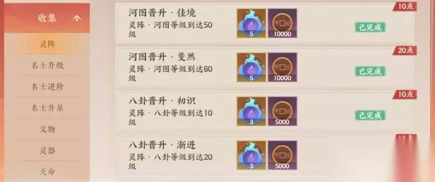 补充: 20、萌新刚入坑很迷茫不知道该干什么? 【履职书】福利相当好的新手任务,每天解锁一篇任务共14篇,完成有大量资源拿,萌新跟着任务走能更快速上手。 【剧情】里各种支线奇遇捋一遍,这些任务解锁做完能获得不少猫灵偶和通宝(部分奇遇需要在故世副本中捡文物触发,建议萌新看见黄色描边的物体都点一点)。 【每日必做】――【活跃】――【休闲】/【勤修】,不知道还有什么可做就点开查看里面的任务,看看哪些有收益的任务没做,争取做完。 【雅舍活动】除了每日悬赏和周一到周五狐狸外,每周五晚答题,周六日逐鹿星野,以及加入星辰司参加紫微演星(萌新较容易错过),都能获得不错奖励,具体玩法规则萌新需要点进雅舍活动细看。 【棋争】奖励周刷新(首通有喵灵偶),能打通多少就打多少,可借好友名士助战,每周有次数限制,首推借姑射木兰,前五层全部通关后可解锁一键扫荡,周日记得检查一下,萌新容易忘记打。 【玄局】奖励周刷新,阵法主要来源,前面入门、简单难度容易通,困难开始层数越往后越难,萌新前期不大可能打通关(尤其对政非体系不友好),建议主角50级有5个70级角色后尝试打精英难度1层(技巧:攒策草,简单战斗关卡尽量少回合通过,最后困难关卡直接花策草潜行),通关精英1层即可获得前面3种难度奖励。 阵法优选:河图阵――群攻加成,开荒首选。 白嫖玄元小妙招:阵法(首次)每十级都能解锁成就,在归元丹够用的前提下可重置阵法升级拿成就奖励。