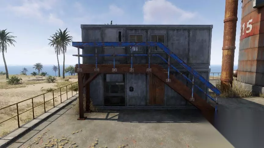 -红卡房:红卡房有两个门,要走有蓝色楼梯的门。刷卡进入后会受到辐射伤害,需服用抗辐射药或不断使用药物,往上走,确保楼梯间的金属门全部关闭,防止NPC偷袭。到达楼顶停机坪后,会有4个军火箱,拿完物资后可准备撤退。
