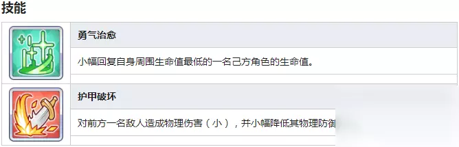 skill1:为自身周围血量最低的角色单体小回复,大概范围是从最前排到可可萝(即中卫,500站位左右)。 skill2:小额物理伤害加上小额破甲。虽说是小额破甲,但在前期破甲角色稀缺的情况下也很重要,很多时候安芸真琴就是差一点减甲就能将BOSS的护甲降到0。 技能循环 起手减甲接单奶,之后每5动1破甲,5动1奶( 姬宫真步你看看你,8动1奶,丢人),技能循环是相当优秀的。 黑骑 纯在战斗中因为承担伤害吸收者的位置,承伤带来的的tp可以加快释放ub物理魔法吸收盾,吸收盾带来的奶量和自身skill1的单奶又能让黑骑纯承受更多伤害回复tp,循环往复。以此让黑骑 纯的续战能力变的极高。‘