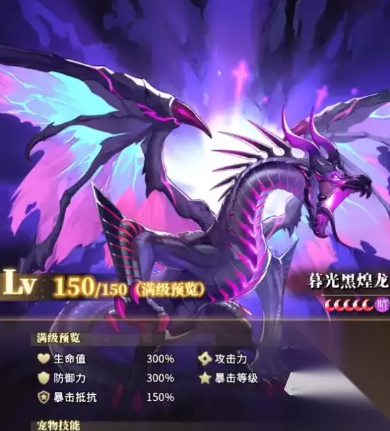 这样能让敌人受到的伤害进一步提升,轻松就拿下胜利,暮光黑煌龙充能和增伤都与召唤物有关,场上面的每一个召唤物都有概率为其充能,以及增加召唤物伤害,它还能召唤出邪能屏障。