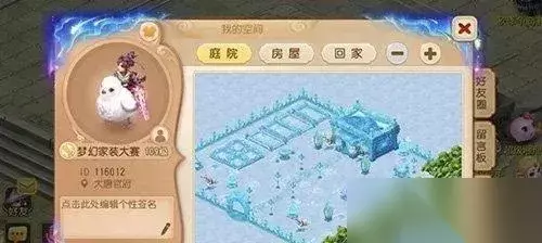 庭院装饰 庭院是自家豪宅的门户,光秃秃的怎么能行?摆放装饰可提高庭院的美观度。庭院装饰包括路砖、院墙、院门、花圃、石桌、石凳等多种类型。在长安城“家具设计师”处可以制作“装饰设计图”,也可以购买初级的功能类装饰。只要少侠精心设计,就能能打造出最酷炫,最典雅,或是最有个性的庭院。