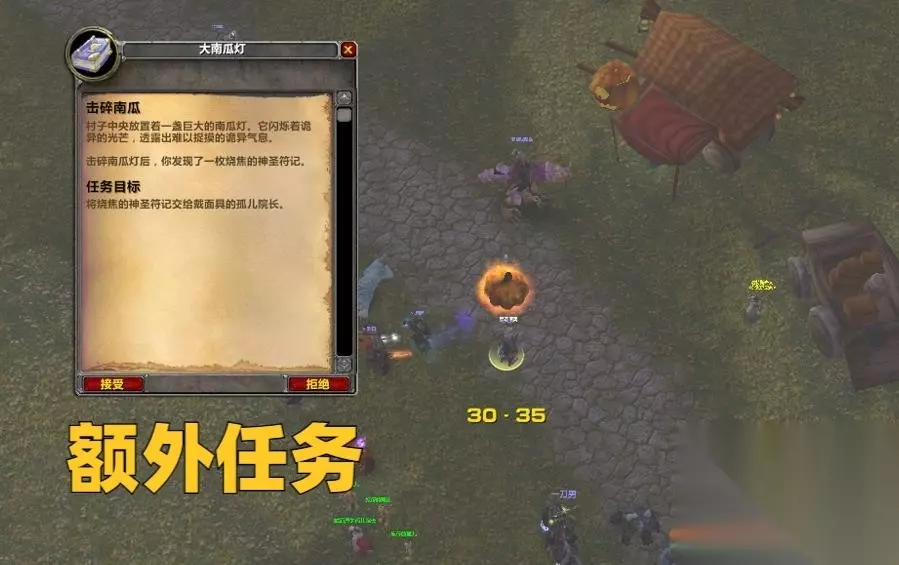 BOSS倒下之后,地上会出现一个南瓜,点击之后就可以获得后续任务,然后去血色修道院就可以额外召唤一次无头骑士,不过一个角色只有一次机会,去年做过的今年也不能做了,不知道是不是BUG导致的。 第八个成就是《狼吞虎咽》,开糖果包的时候可以获得奶糖,一直点一直吃,吃到吐即可。第九个成就是《不给糖果就捣乱》,在旅馆拿一次糖果包即可。第十个成就则是去击杀无头骑士,组队去血色召唤就行了。