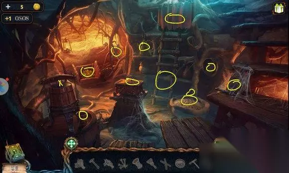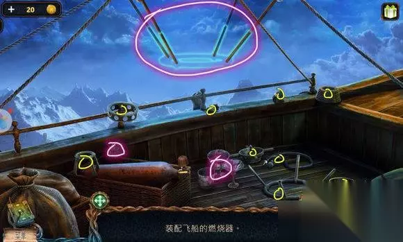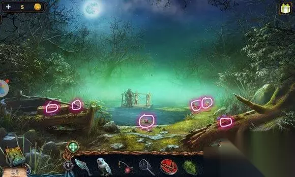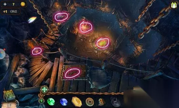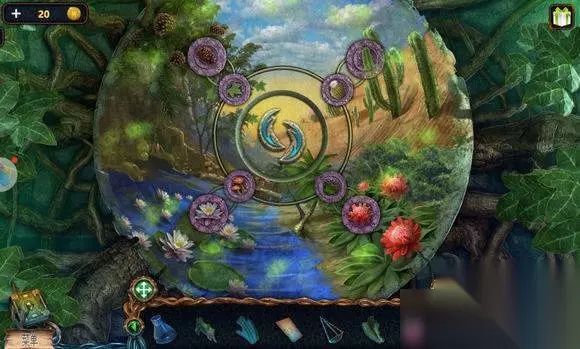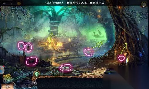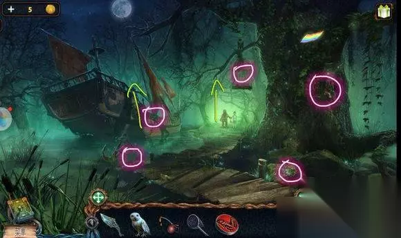 森林场景【船上房间】 1、墙上(画旁)——挂画 2、画——找相同——鹿雕像 森林场景【右边树屋】 1、地上——放水晶碎片——完成拼图——地下 2、地下——寻物游戏——水晶 森林场景【路口左边大树】 机器——安水晶(两个)——拉杆,启动机器——照亮树屋 森林场景【左边树屋】 1、书——铜钱 2、挂画——用刀——鱼雕像 森林场景【树屋树顶】 1、三个石柱——安鹰、鱼、鹿雕像 2、柱子——恢复柱子图案——钥匙 森林场景【矿井大门】 大门——安钥匙——开启地心场景