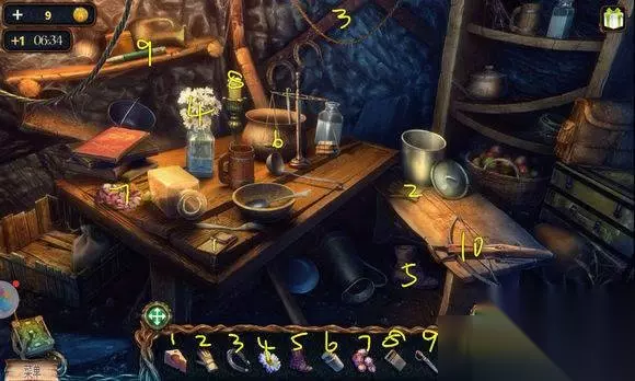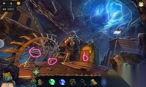 森林场景【矿井外小村】 1、地上——桌脚 森林场景【矿井外小村,木屋外】 1、门旁——木板 2、破板车——寻物游戏——水晶 森林场景【矿井外小村】 1、断桥——放木板——通往矿井大门 森林场景【矿井大门】 1、地上——泰迪熊,绿宝石 2、篝火旁——面包屑,钳子 3、门旁石头——用猫头鹰——蓝宝石 森林场景【矿井外小村】 1、水里——扔面包屑——用捕网——鱼 森林场景【矿井外小村,木屋外】 1、屋顶鸬鹚——给鱼——地上捡钥匙 2、木屋门——钥匙——开门 森林场景【矿井外小村,木屋】 1、地上(桌子下)——桌脚 2、桌角——指针,时钟图案(6:10) 3、枕头——用刀——水晶碎片 4、墙上鱼——用钳子——金色盘 5、挂钟——安指针——调时间——鱼雕塑 6、桌角盒子——安鱼雕塑——根据提示完成——鹰雕像 森林场景【矿井外小村,木屋外】 窗下凳子——安桌脚——凳子 森林场景【矿井外小村,木屋】 地毯——放凳子——去阁楼 阁楼——木棒,画 森林场景【矿井外小村,木屋外】 窗户旁——放木棒——钩杆