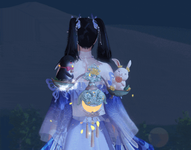 近日有一黑一白两小兔与田间比跳高,黑兔沉着冷静一心只为跳更高,白兔调皮捣蛋,一心肖想农户晒在架子上的萝卜干。农户观之觉得甚是有趣,遂将压水井的手柄做了一番改造,二兔蹦跳之间便可引得井中清水灌溉农田,而两只小兔也因此终于吃到了心心念念的萝卜。后来为了嘉奖两只可爱的小兔,村民决定将银铃赠与黑兔,桂花耳饰赠与白兔,以答谢两只贪吃的小可爱。云锦楼小师傅听闻此事觉得甚是有趣,将其制成挂件供各位少侠玩耍。