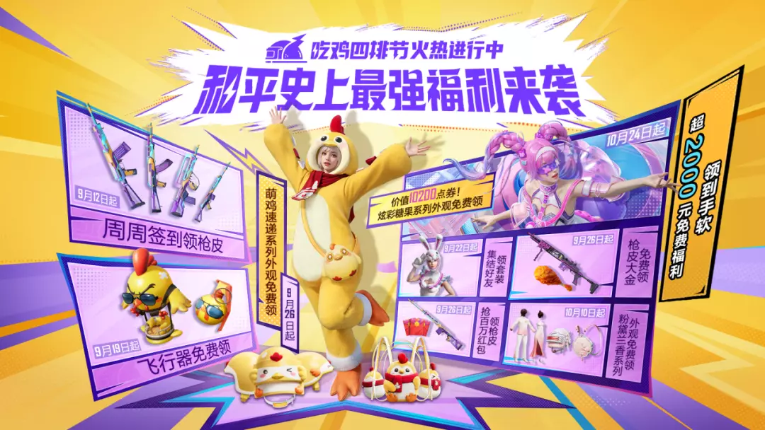 《和平精英》“吃鸡四排节”的福利力度堪称空前,总价值超2000元的福利内容唾手可得!
