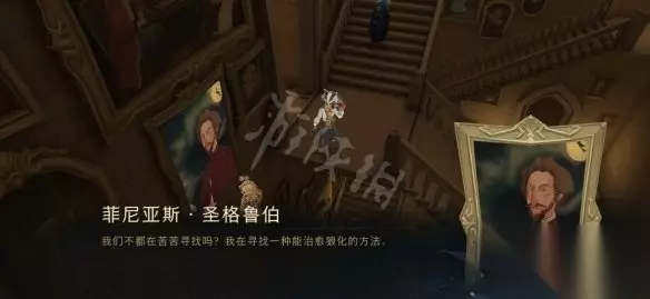 位置:在主楼,顺着楼梯直接向上走。来到图书馆外,和外面的菲尼亚斯.圣格鲁伯画像对话,要站在移动的楼梯上才能对话。