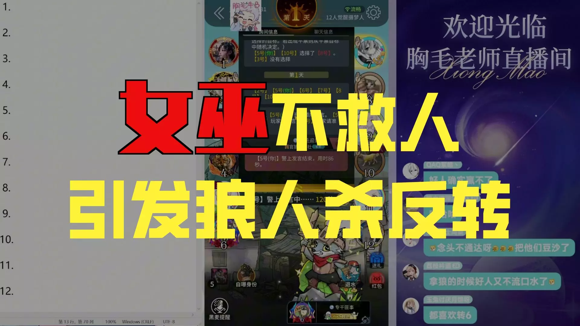 这是喜人系列的搞笑脱口秀片段,内容演绎了四人玩狼人杀时出现三狼的爆笑状况,因局面荒诞让唯一的民只能无奈自认,是充满趣味的搞笑狼人杀演绎片段。
