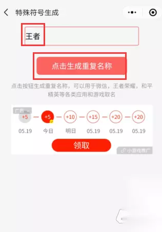 四、打开重复昵称后,首先输入已重复的昵称,点击“点击生成重复名称”。