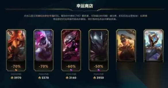 ucc lol幸运商店怎么刷新 1、召唤师可以选择授权信息获得专属皮肤推荐,也可以不授权信息,活动将为您生成随机的皮肤推荐;ucc 2、在幸运商店活动中,每位召唤师可以获得0~6个不等的皮肤推荐,每个皮肤均有一定的折扣;ucc