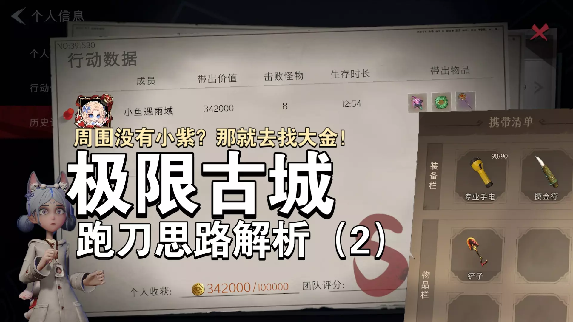 本期讲解,极限古城跑刀第二打法 如果你进入小门发现周围没有足够价值的小紫,或者一堆玉扳指和古筝时间也来不及搬运,那就不要犹豫了,直接去找大金