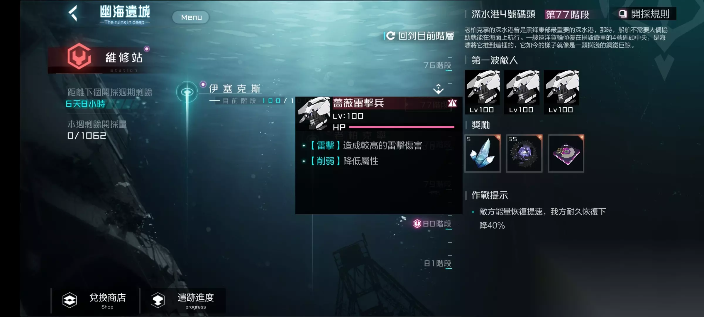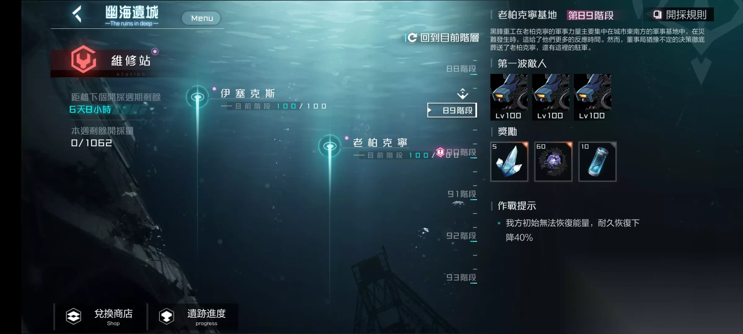 黑潮:深海觉醒幽海二塔简易指难如下: