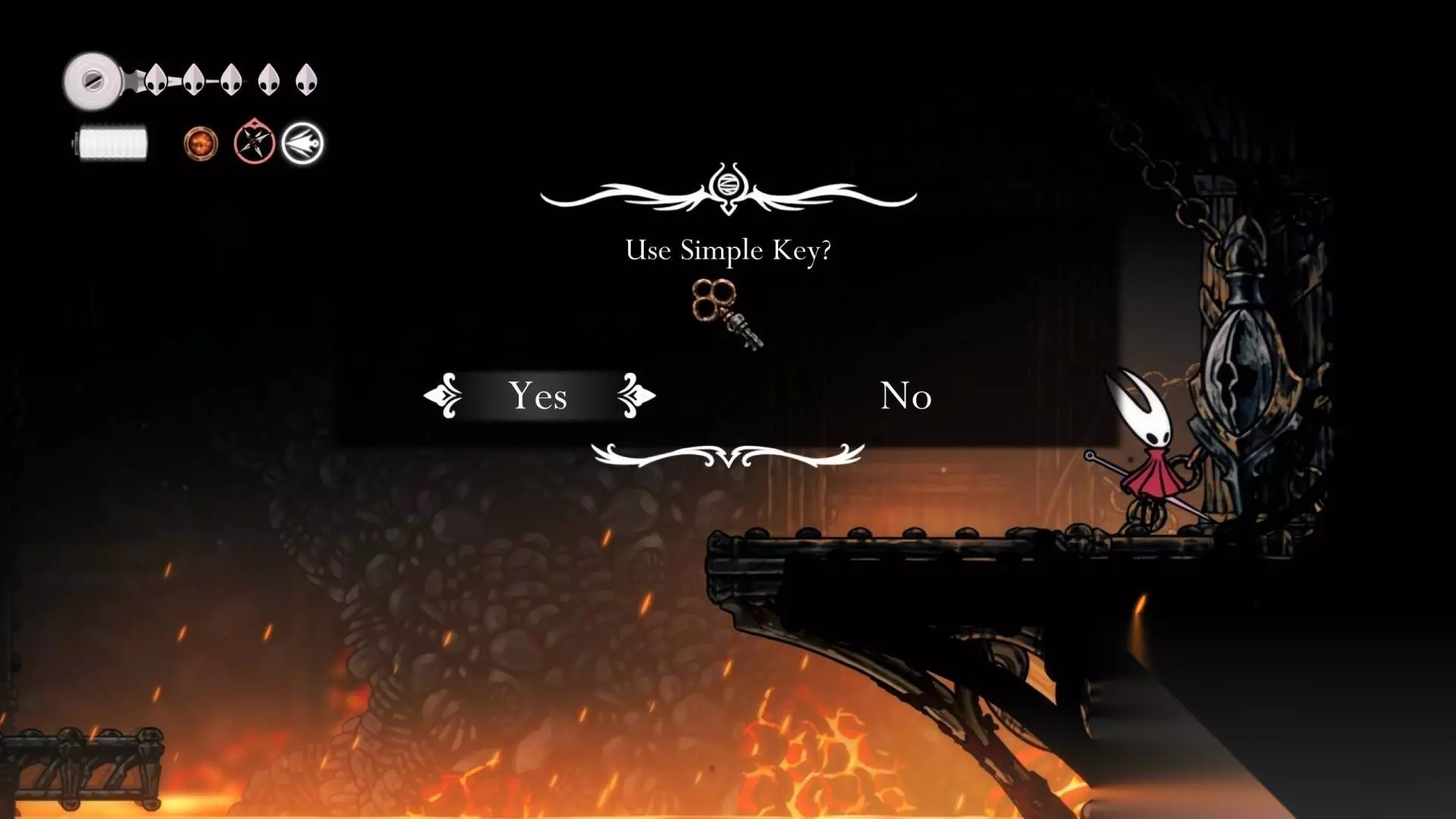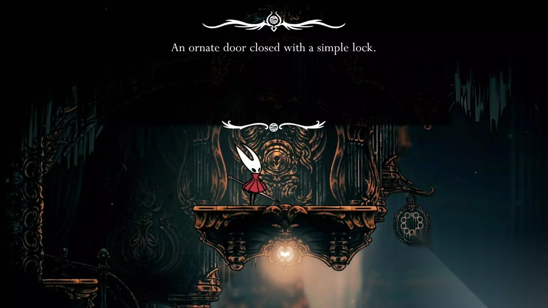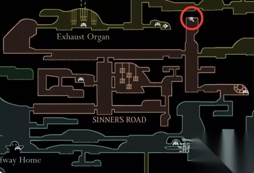 简易钥匙门02 在解锁冲刺后,玩家可以穿过熔岩区域,在深坞找到这扇门。这个区域不仅可以获得大量念珠奖励,右上角还可以开启通往远野的近路,并获得工具【燧石板】。就像是在游戏中找到一条捷径,让你快速提升实力。