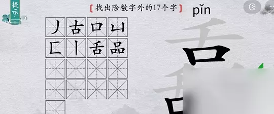 通过将一些基本的汉字部首和笔画进行组合,形成了新的汉字。文章还提到了一些汉字的变体和由多个相同部首组成的汉字。 汉字进化舙找出17个字怎么过 在探寻汉字构成的奥秘中,它们分别是:只、要、口、丨、匚、凵、丶、女、吕、丄、丅、干、土、王、丿、西、嘦(jiào)。 舙(huà)、舌、古、千、口、丿、丨、匚、凵、亻、土、佸(huó)、估、品、吕、垚(yáo)、吅(xuān)。 字“舙”(huà)是由三个“舌”字构成的,而“舌”字本身可以拆解为“千”和“口”。如果我们去除“千”字上的一撇,就变成了“古”字。此外,“舌”还蕴含着丿、丨、匚、凵、亻等基本笔画。